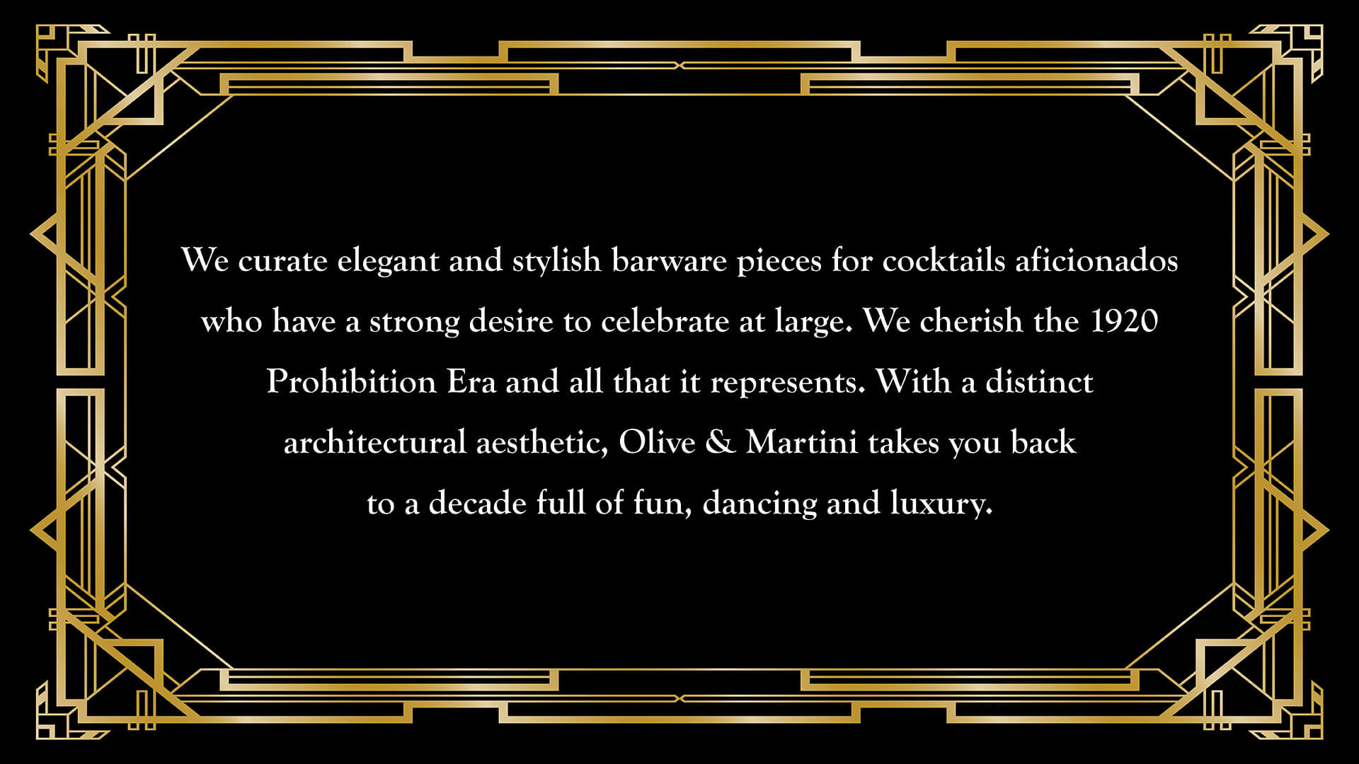 Olive & Martini is a cocktailware brand inspired by the rebellious glamour of the 1920s Prohibition era.